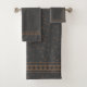 A rustic bath towel set perfect for a cabin in the woods or other country decor. The hand towel features an image I took of white tail deer in the woods soon after a new snow on a dark background with pine cones. The coordinating bath towel & washcloth is the same dark background with pine cones and a matching diamond pattern border.