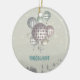Lightweight, smooth, pure white ornament with nice sheen. Perfect size to be seen from across the room ... and to attract closer inspection! Price was great for ordering enough for the whole family! Clear, bold black design just as requested. Matches the order exactly. Just so nice!