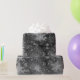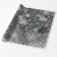 A neutral holiday wrapping paper in a black and white tone featuring a watercolor painted dusk sky background with painted silver berries on branches under silver snowfall and oversized silver snowflakes.