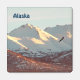 A bald eagle (Haliaeetus leucocephalus) flies in front of the snow-covered Chugach Range near Anchorage, AK. Customizable text reading, "Alaska" also appears.