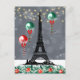 This beautiful Paris themed holiday greeting card features the Eiffel Tower in a snowy scene complete with Christmas colored balloons.