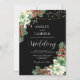 Winter Evergreen and Berries Black Wedding Invitation