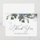 Thank you card featuring winter blue florals, snowflakes and evergreen. Personalize with your information or click "Click to customize further" to edit font styles, size and colors. Adjust the text for a bridal shower or other event.