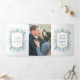 Blue spruce winter pine botanical watercolor art and gold border wedding program with 2 full-page photos. Personalize this wedding trifold program with your own wedding ceremony details. Other colors and matching wedding items available. © Original watercolor art and graphic design by Sarah Trett for www.mylittleedenweddings.com on Zazzle.