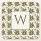 Winter Evergreen Pinecone Botanical Monogram Square Paper Coaster