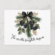 Like a whisper from a snow-covered forest, this elegant card captures the first magical breath of winter. A graceful arrangement of pine needles, frosted berries, and golden twigs is tied together with a black plaid bow, creating a sophisticated, woodland-inspired holiday greeting. The handwritten script “The winter fairytale begins” invites warmth, wonder, and the quiet beauty of the season.