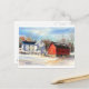 Winter Farmhouse & Red Barn Postcard