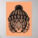 This design features a cute winter ready tiger wearing a knit cap and round eyeglasses.
