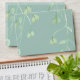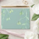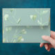 Winter foliage collection wedding envelope with gentle pastel green background and winter foliage seamless pattern