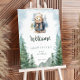 Perfect your baby shower decor with this foam board welcome sign. This sign features a beautiful landscape with a pine trees and mountains, and cute little bear dressed up for the wintertime. For matching items check out our collection.