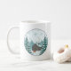 Warm steam curls up from your mug as snow settles outside the window. This glossy ceramic mug carries a peaceful winter scene — tall, snow-dusted evergreens cradling a tiny cabin — that invites slow mornings and quiet moments. It fits naturally into a cozy routine: hot coffee before a walk, tea while you read by lamplight, or cocoa after a day in the cold. The clean white backdrop and vivid printing keep the illustration crisp and comforting, so the scene feels alive every time you lift the cup. Sized for either a standard morning brew or an extra-large comfort pour, this mug brings a little cabin-in-the-woods calm to everyday rituals.
