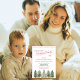 Unique classic and vintage design featuring winter forest trees and green and red typography on a white background. Enjoy the holidays by sharing these beautiful invitation cards with your family and friends to create unforgettable memories.