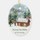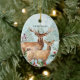 Winter forest, deer, log cabin Ceramic Ornament