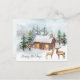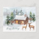Winter forest, deer, log cabin Christmas Postcard