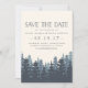 Our rustic and wintry pine tree wedding save the date cards have a chilly woodland vibe, with a lush forest of pine trees in rich shades of smoky blue gray, melting into a foreground of dark navy blue softened with charcoal. Perfect for winter weddings in forest, woodland or mountain settings, these save the dates feature a warm ivory background with your wedding details in smoky navy and medium gray typography. Custom text templates provide space for your names, wedding date, location and wedding website. Add an engagement photo to the back of the card if desired.