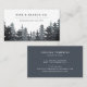 Rustic elegant business card design features a forest of pine trees in muted shades of dusty blue and charcoal gray, with two lines of custom text for your business name and/or your name and business description, in a chic combo of block and italic lettering. Add your full contact information to the reverse side in white on dusty blue.