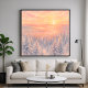 Artwork of a forest landscape covered in snow with a sunset or sunrise in the distant horizon. Lose yourself in the vast beauty of the wilderness with this sweeping watercolor style vista. Unlike intimate forest scenes, this artwork captures the grandeur of an endless evergreen forest stretching toward the horizon. From a high vantage point, you gaze out over thousands of snow-dusted pine trees that fade gently into a misty, atmospheric distance. The setting/rising sun hangs low in the sky, casting a warm, peach-colored glow that illuminates the tops of the trees, creating a stunning contrast with the cool, icy blues of the shadowed valleys below. This piece creates a window to the outdoors, perfect for adding depth and grandeur to a living room or office.