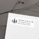Designed to match our Winter Forest wedding stationery and business collection, these rustic woodland return address labels feature a trio of pine trees in moody charcoal and blue, alongside three lines of text for your name and return address.