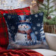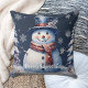 Winter Forest Snowman Christmas | Blue Throw Pillow