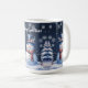 Sip the season in style with this Winter Forest Snowman Christmas Coffee Mug, featuring a smiling snowman in a top hat and scarf amidst snow-covered pines and gently falling white snowflakes. The festive Merry Christmas greeting in elegant script and charming watercolor design bring seasonal cheer to every sip. Perfect for holiday coffee gifts, this blue mug adds warmth and whimsy to your morning routine or holiday entertaining.