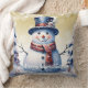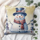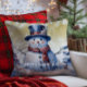 Winter Forest Snowman Christmas | Gold Throw Pillow