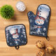 Bring cozy holiday cheer to your kitchen with this Winter Forest Snowman Christmas Oven Mitt and Potholder Set, featuring a smiling snowman in a top hat and scarf surrounded by snowy pines and gently falling snowflakes. The Merry Christmas message in elegant script adds a touch of festive charm, while the serene winter forest scene in blue tones beautifully complements any holiday theme. Perfect for seasonal kitchen accents, this whimsical set blends style and function for all your Christmas cooking and baking moments.