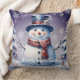 Winter Forest Snowman Christmas | Purple Throw Pillow