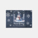 Welcome guests with festive charm using this Winter Forest Snowman Christmas Rug, featuring a smiling snowman in a top hat and scarf amidst a serene winter forest with gently falling snow. Personalized with your family name in modern typography alongside the elegant Seasons Greetings in script, this blue rug adds a warm, cheerful touch to your holiday home accents. Perfect for entryways or living spaces, it brings seasonal style and festive spirit to every corner of your home.