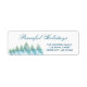 Peaceful Holidays Winter Forest Watercolor Script Christmas Address Label. Watercolor drawing of trees in winter, winter forest with snow in blue and green colors. The design is peaceful and calm with text in elegant script. Customize the address.