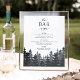 Invite guests to grab a favorite libation with our charming rustic wedding bar sign. 11x14 bar sign features a bottom border of evergreen pine trees in rich shades of gray, charcoal and midnight, with "the bar is open" in off-black lettering. Personalize with your bar menu or signature cocktails with six custom text fields. Designed to match our Winter Forest collection.