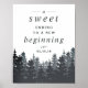 Invite guests to grab some sweets with our charming rustic wedding dessert table sign. 11x14 dessert table sign features a bottom border of pine trees in rich shades of gray, charcoal and midnight, with "a sweet ending to a new beginning" in off-black lettering. Personalize with your wedding date underneath the inscription. Designed to match our Winter Forest wedding invitation collection.