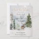 Send your friends and family a Save the Date card they are sure to love! Personalize with your event information to create a one of a kind card that is sure to impress. Designed with a winter forest scene including a deer, woods, snowflakes, and a cardinal.