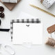 Our woodland chic personalized stationery flat cards feature a small dark gray fox illustration at the top, with your name or choice or personalization along the bottom in classic lettering. Cards reverse to a rustic black and white buffalo plaid pattern.