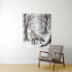 This elegant winter fox tapestry features a vigilant red fox standing in a snowy forest clearing surrounded by bare trees covered in frost. Created with flowing black and white ink wash painting techniques and subtle warm accents, the artwork captures detailed fur texture and the serene beauty of winter wilderness with falling snow particles and atmospheric mist. Perfect for nature lovers, wildlife enthusiasts, winter decor, cabin aesthetic, dark academia style, or as a meaningful gift for hikers and outdoor adventurers. this tapestry brings the peaceful spirit of the winter forest into any space, creating a contemplative and enchanting ambiance ideal for bedrooms, living rooms, offices, or meditation spaces.