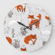 Winter Foxes Bunny Seamless Pattern Large Clock