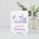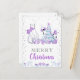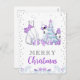 Cute Watercolor Purple and Blue Winter Friends Polar Bear and Penguins christmas design with christmas tree and silver confetti borders