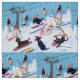 Whimsical and funny Skiing Labrador Retriever Painting design. Happy Labrador Retriever dogs enjoy skiing in Labrador Fancy Ski Resort!!! Black Labrador, Chocolate Labrador, Yellow Labrador are all painted in the picture. They really love snow and winter sport. Colorful and cheery. Painted by Naomi Ochiai. Nice dog gifts for Labrador lover's home. Great fun gifts for yourself, too.