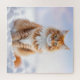 Puzzle featuring a painting of a ginger kitty cat in a dreamy winter wonderland scene. Nice for both adults and children.