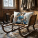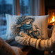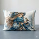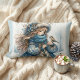 Winter Girl with Bird in Blue Floral Coat Lumbar Pillow