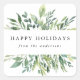 Our elegant Winter Greenery holiday stickers feature the greeting "Happy Holidays" and your name framed by green watercolor foliage.
