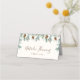 Elegant Winter Greenery Place Card. This design features an illustration of pine branches and cones in watercolor style. Card adorned with images of the falling snow.