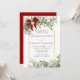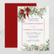 Christmas Wedding Invitation – A romantic winter design featuring a soft watercolor frame of evergreen foliage and red berries, gently accented by a warm golden border that adds a touch of refined elegance. Finished with a delicate red bow and charming wedding bells, this design feels festive, timeless, and inviting. Perfect for a cozy Christmas celebration, an elegant winter ceremony, or a countryside gathering filled with seasonal charm.