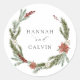 Seal your invitation envelopes or favors with these classic botanical wedding stickers. Featuring your names framed by a watercolor wreath of green winter foliage and poinsettias. Coordinates with the Winter Elegance wedding collection found in the Adore Paper Co. Zazzle Shop.