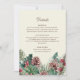 Your guests will be delighted to receive this exquisite card, which provides essential details for your special day. The front showcases a graceful arrangement of pine branches, pinecones, holly berries, and green leaves, encapsulating the beauty of winter's natural elements.