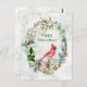 This design features greenery foliage (mistletoe and fir needles) wreath and colorful cardinal bird.