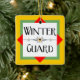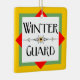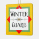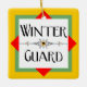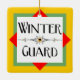 Winter guard with a decorative line sporting a flag in a colorful gold block, is a unique design for indoor color guard members at birthdays and holidays.