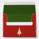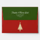Elegant, modern, pine tree with retro pattern, red and green winter holiday 5x7 envelope with return address and simple trendy calligraphy script.