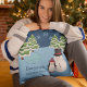 Celebrate the festive Christmas season with this custom holiday throw pillow. Pillow features a penguin in a cozy winter hat, a smiling happy snowman, trees covered in snow, white falling snowflakes, and an icy blue pond. Customize with your first name and the year. This cozy throw pillow will be treasured for many winter seasons to come!