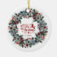 Winter Holiday Wreath 'Tis the Season Monogram Ceramic Ornament