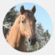 Dun horse in snowy background. Could be for Christmas could just be a nice winter photo sticker